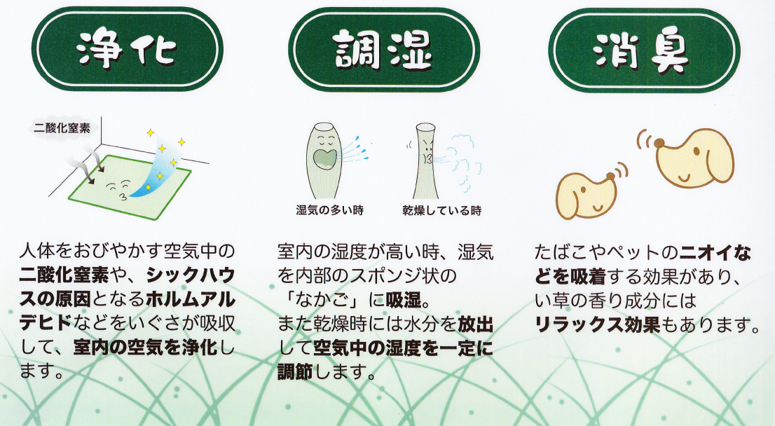下記で紹介した以外にもたくさんの効果があります。 詳しくご覧になりたい方は、上記の「畳の健康効果」をクリックしてください。
